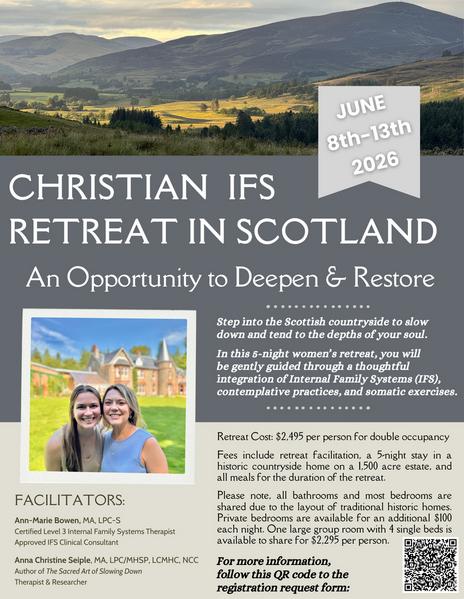 Christian Women's IFS Retreat in Scotland in June 2026! Retreat is full. To request information on future events or to be added to waitlist, please complete this